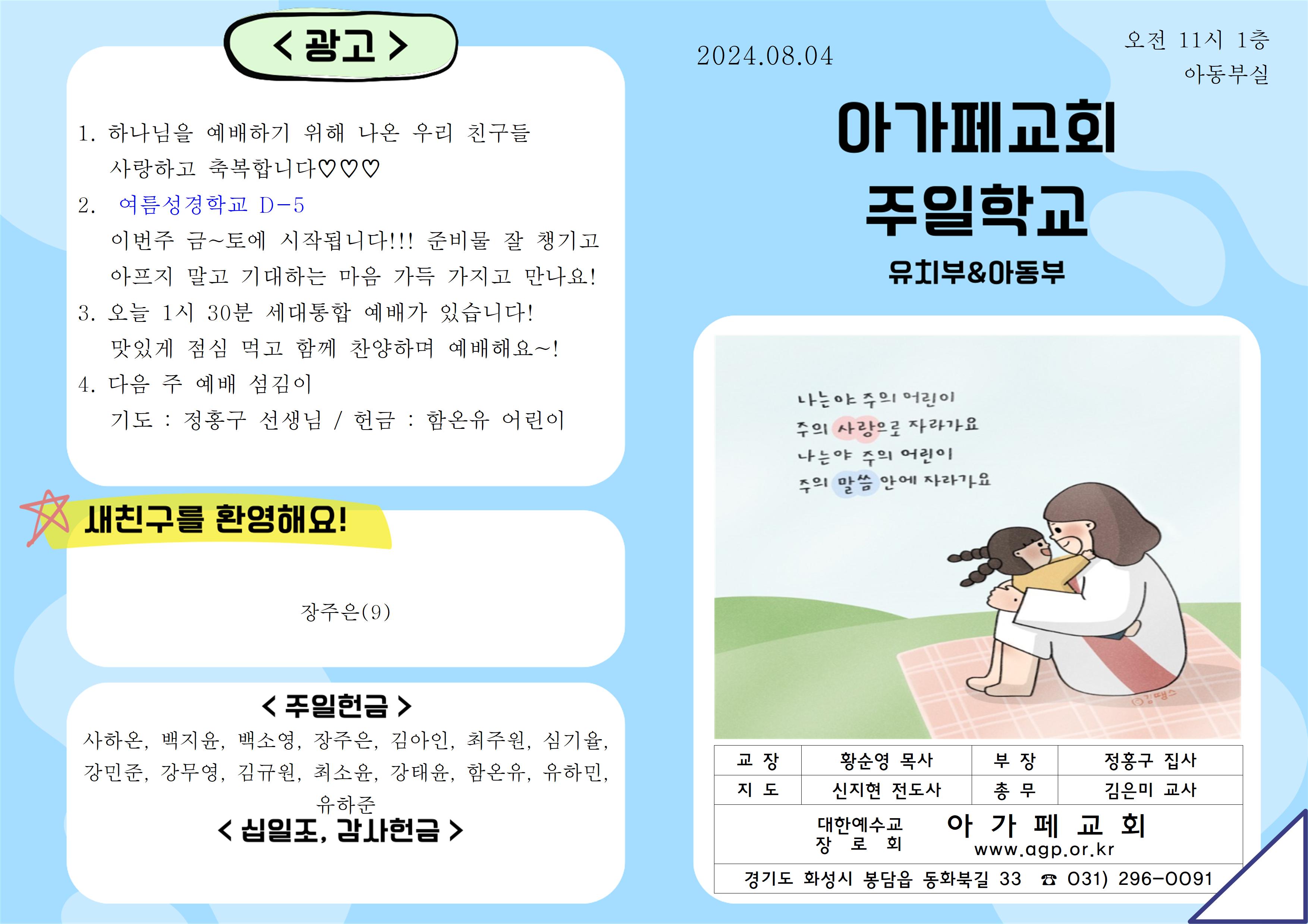 2024년 8월 4일 유치부&아동부 주보