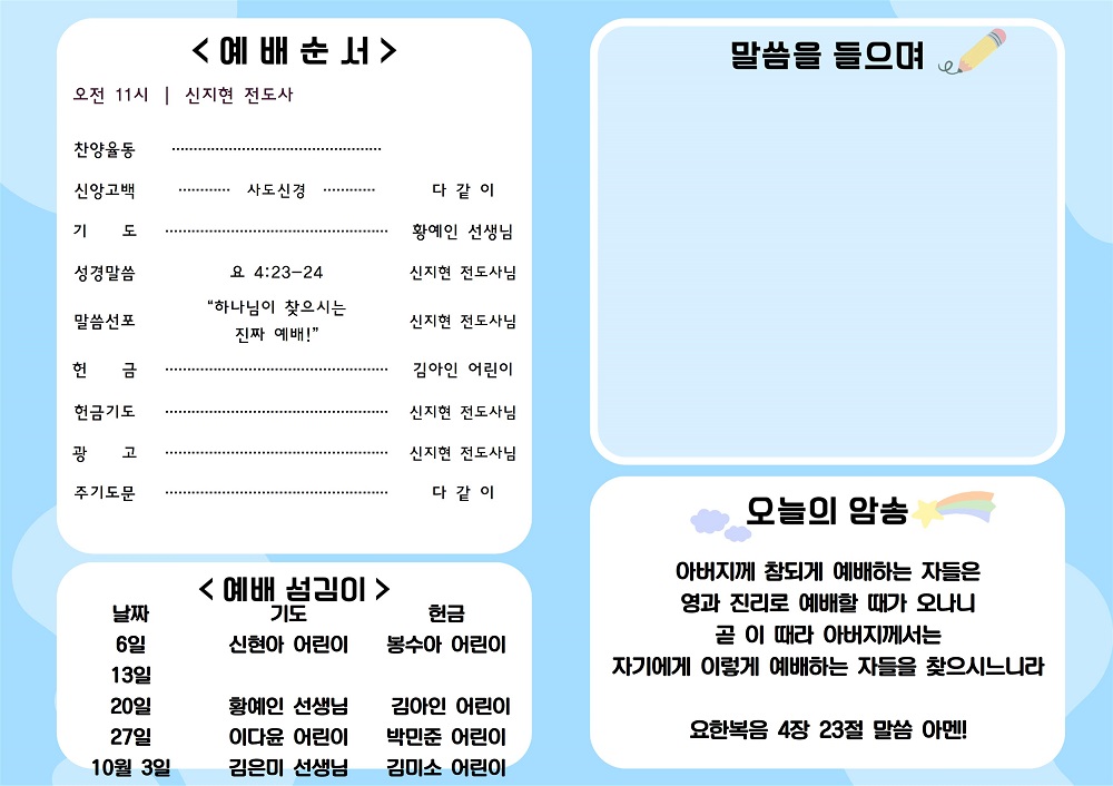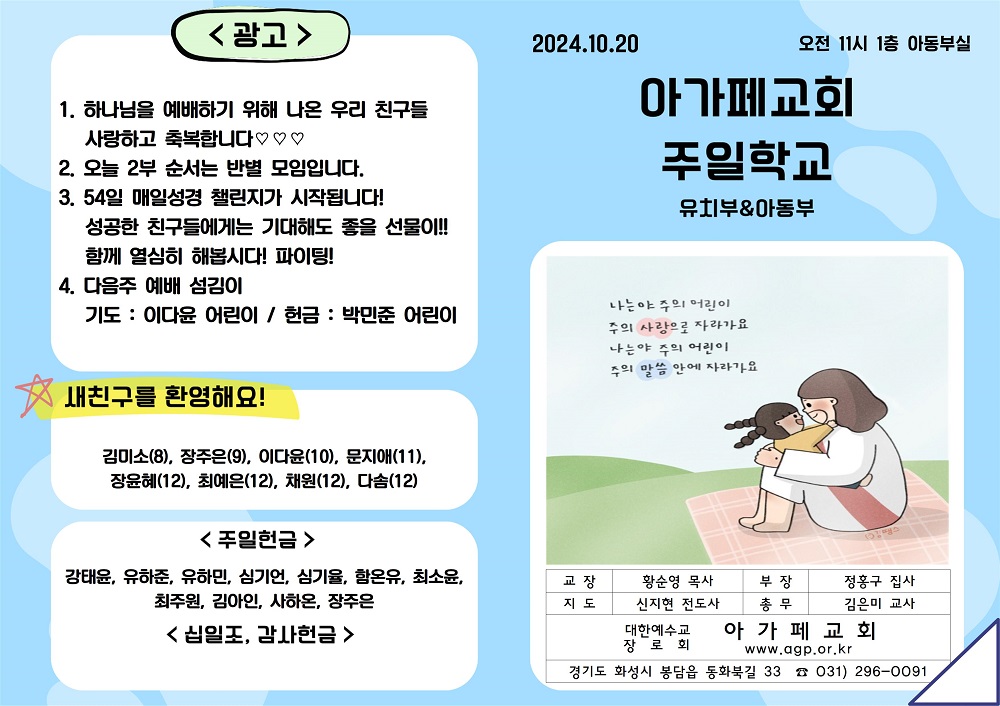 2024년 10월 20일 유치부&아동부 주보