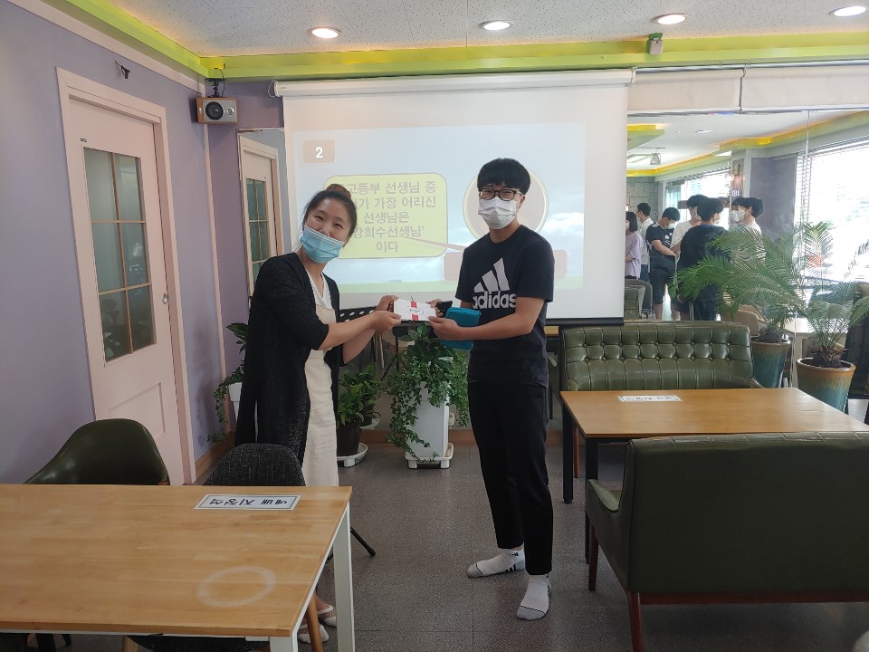우리 중고등부 친구들의 친목을 위하여 예배를 마치고 OX 퀴즈대회가 열렸어요. 두번째 문제에서 올 탈락 하고 남은 인원은 딱 한명!!! (이렇게 쉽게 떨어질 줄 몰랐징....) 최후의 1인 시온이에게 선물을 주고, 다시 시작된 OX 퀴즈. 마지막 문제인 희수쌤과 우현쌤의 팔씨름 대회에서 희수쌤이 이기셔서~ 희수쌤을 응원한 남자친구 세명이 선물을 받게 되었답니다. 우리 친구들 재미있었나요?? 자자, 그럼 다음 프로그램때도 많은 참여 바랄께요~