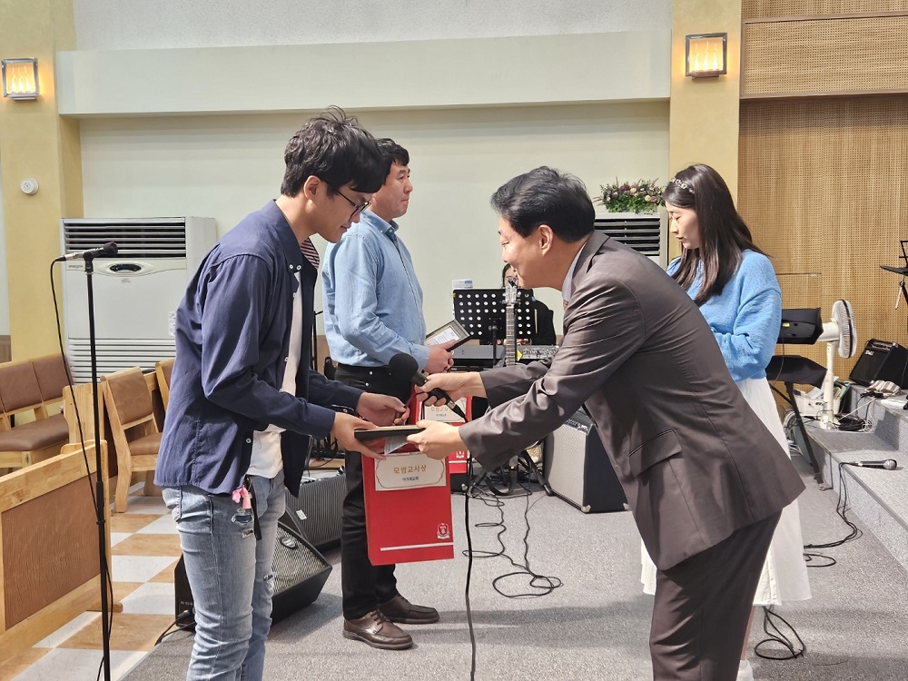 모범교사: 정홍구집사, 김은미집사, 김성민청년