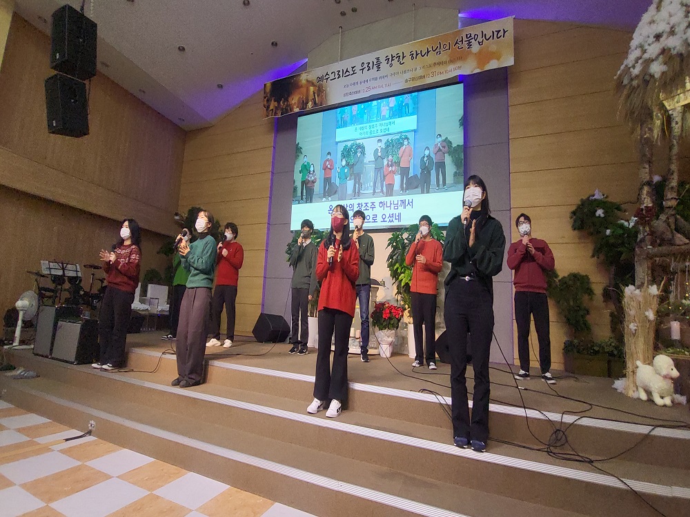 성탄축하예배 1. 동방박사 축하 2. 케잌컷팅 3. 축하 공연 : 유아유치부 4. 축하 공연 : 아동부 5. 축하 공연 : 중고등부 6. 축하공연 : 청년부 7. 찬양 : 시온찬양대 8. 찬양 : 글로리아찬양단