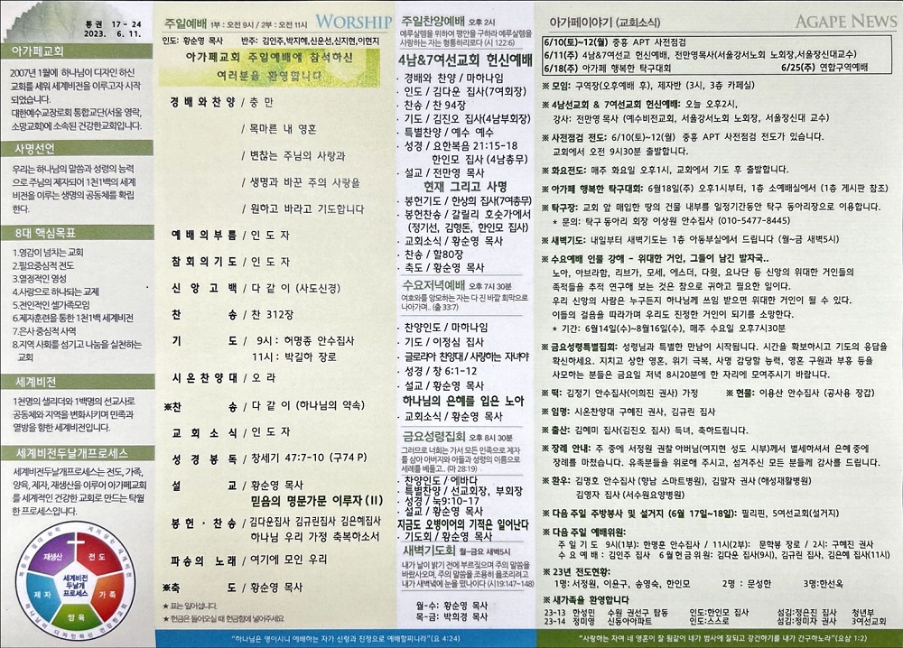 샬롬! 대한예수교장로회 아가페교회에 오신걸 진심으로 환영합니다.