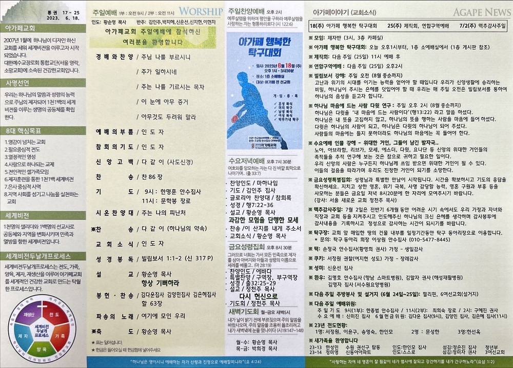 2023년 6월 18일 아가페교회 소식