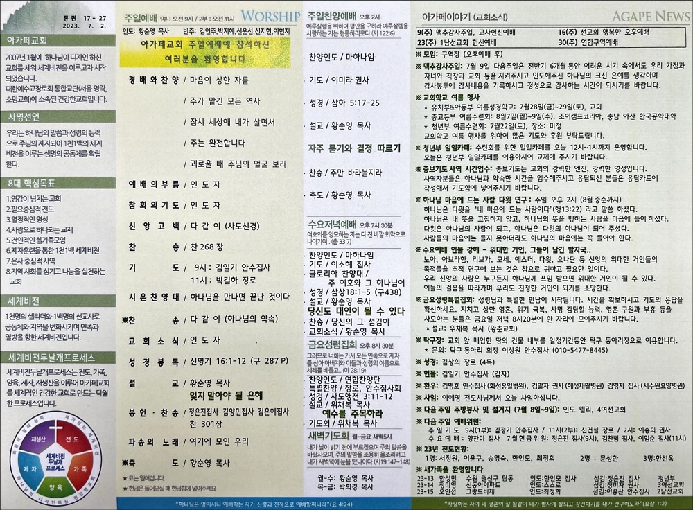샬롬! 대한예수교장로회 아가페교회에 오신걸 진심으로 환영합니다.