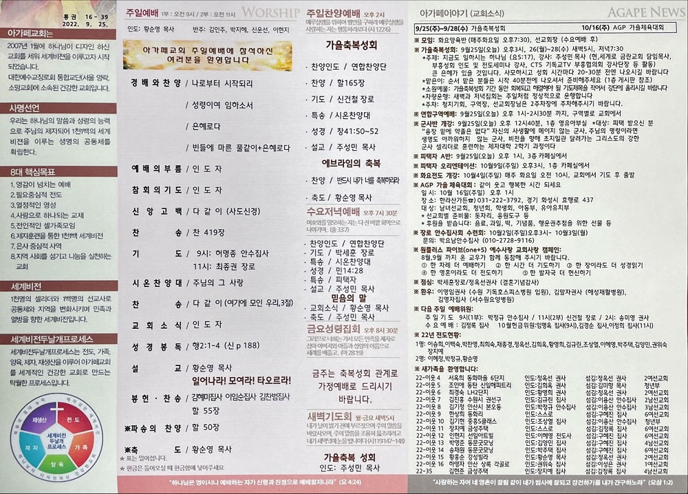 2022년 9월 25일 아가페교회 소식