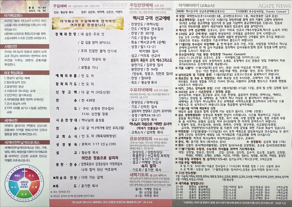 샬롬! 대한예수교장로회 아가페교회에 오신걸 진심으로 환영합니다.