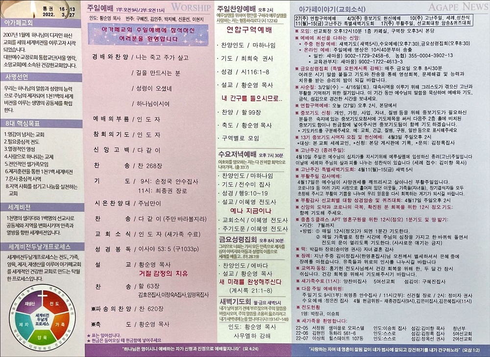 2022년 3월 27일 아가페교회 소식