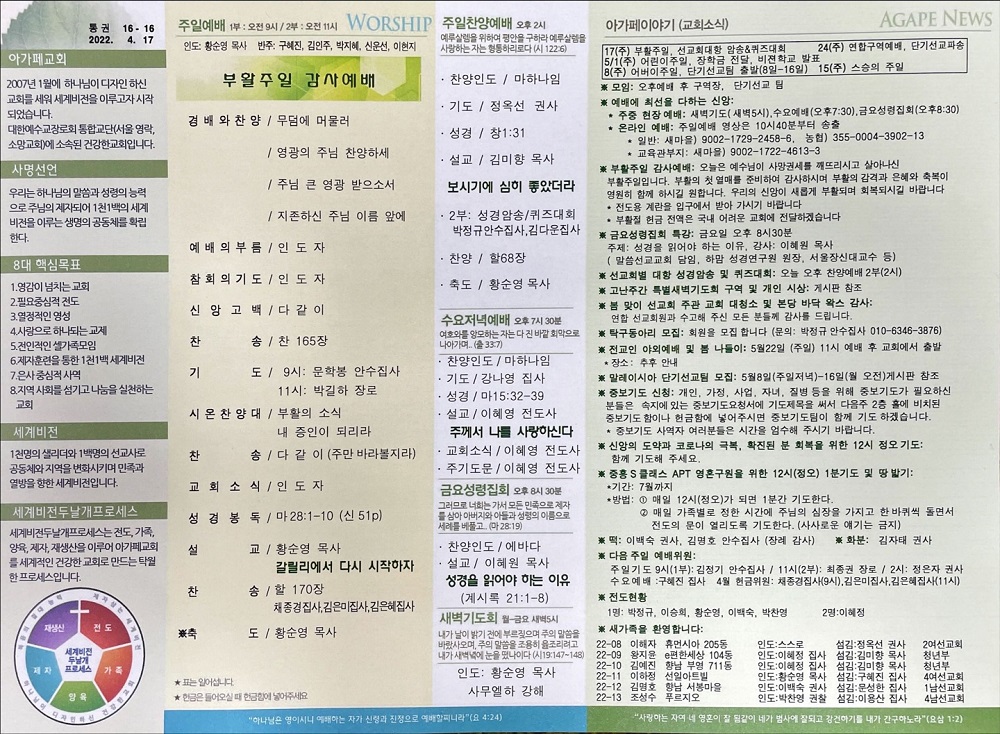 샬롬! 대한예수교장로회 아가페교회에 오신걸 진심으로 환영합니다.