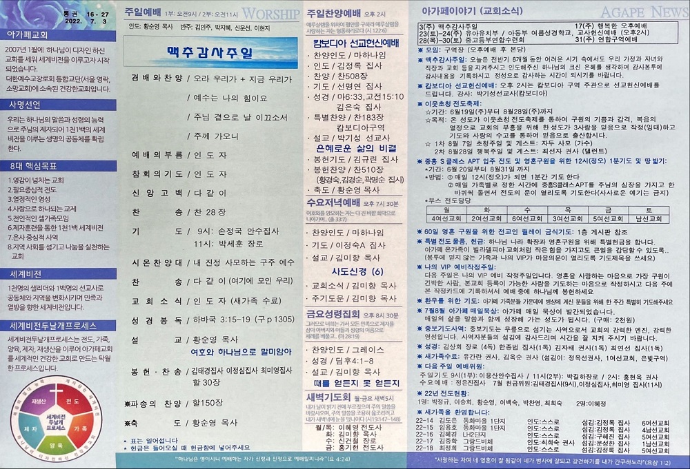 샬롬! 대한예수교장로회 아가페교회에 오신걸 진심으로 환영합니다.