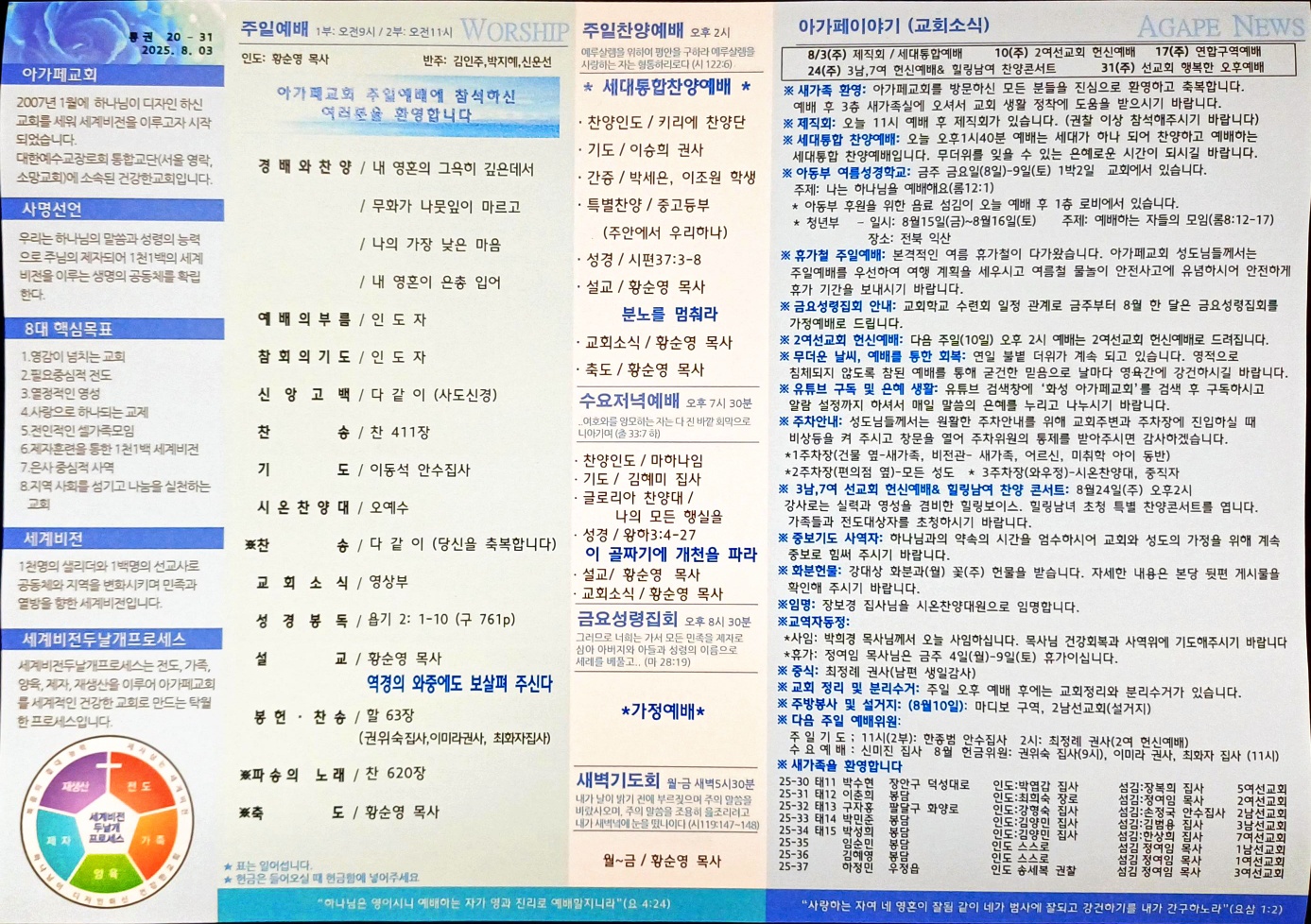 샬롬! 대한예수교장로회 아가페교회에 오신걸 진심으로 환영합니다.