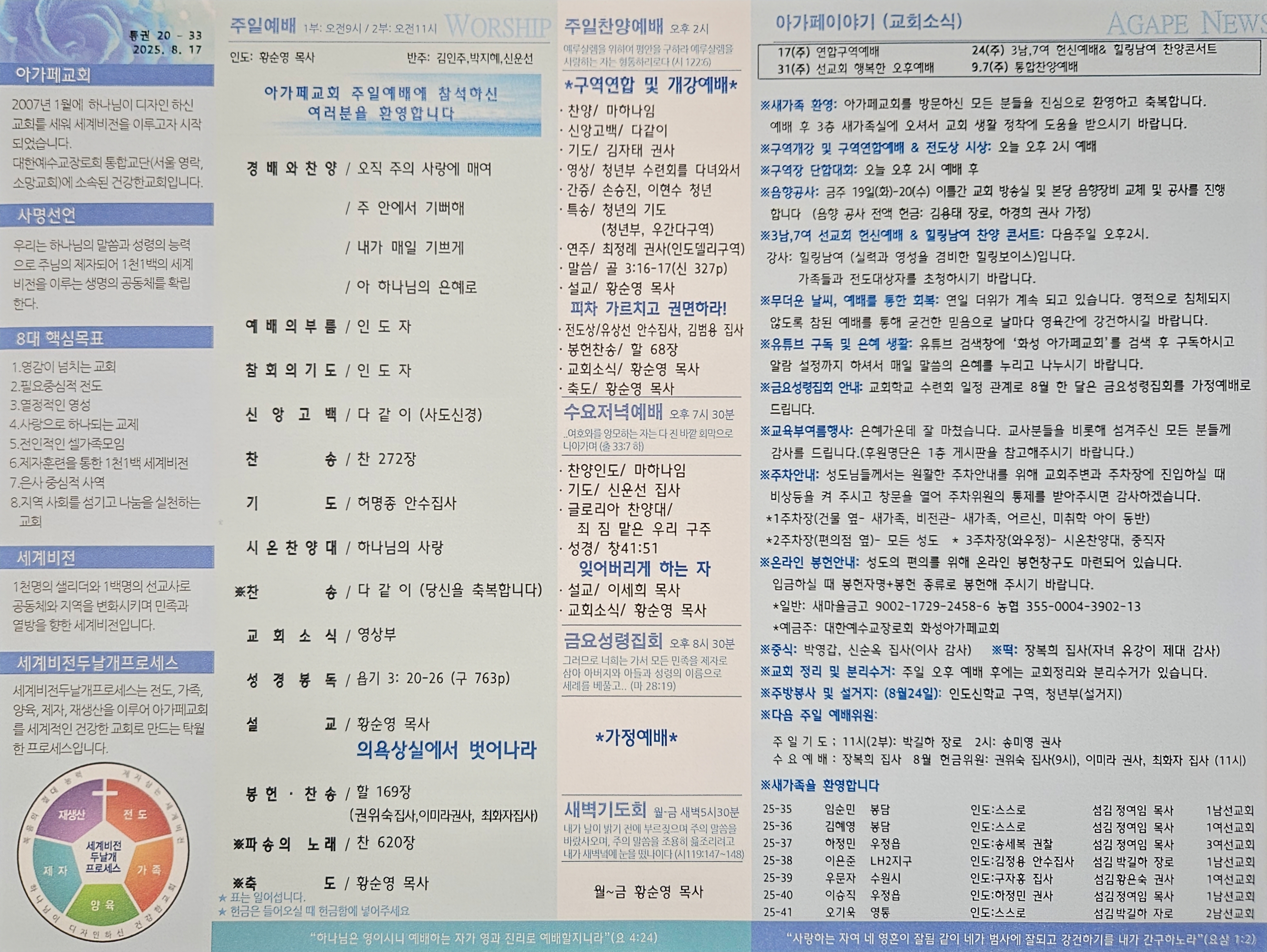 샬롬! 대한예수교장로회 아가페교회에 오신걸 진심으로 환영합니다.