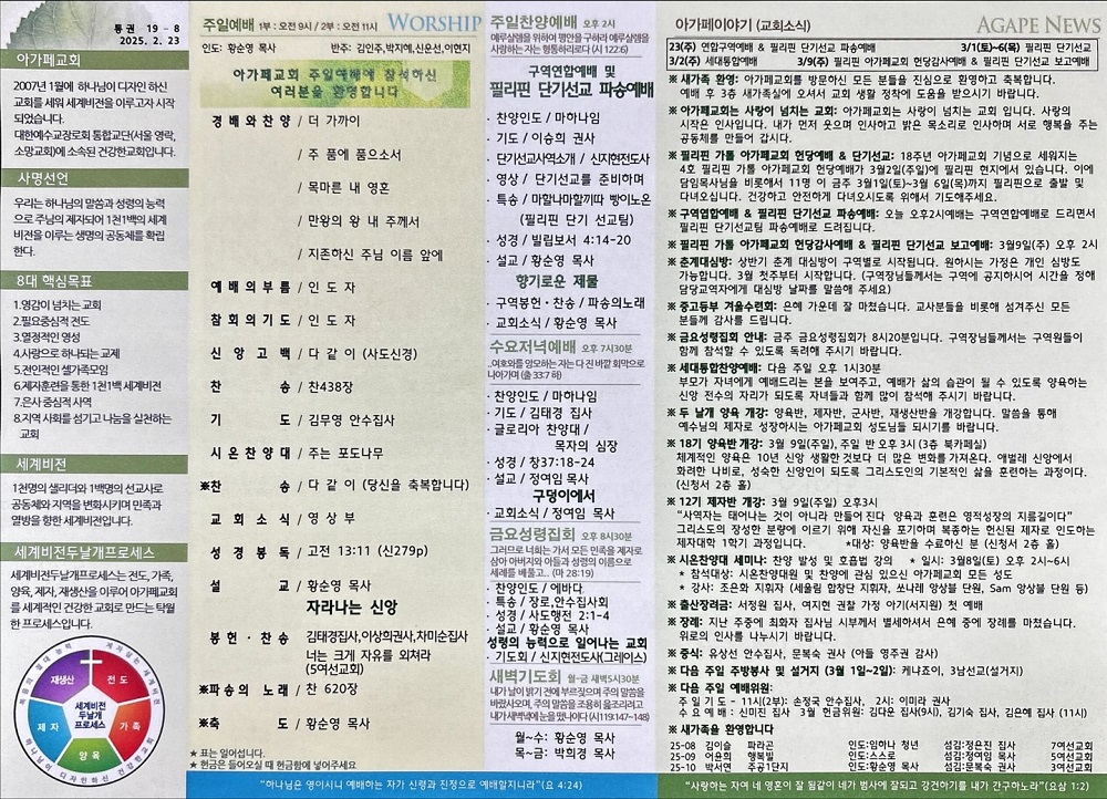 2025년 2월 23일 아가페교회 소식