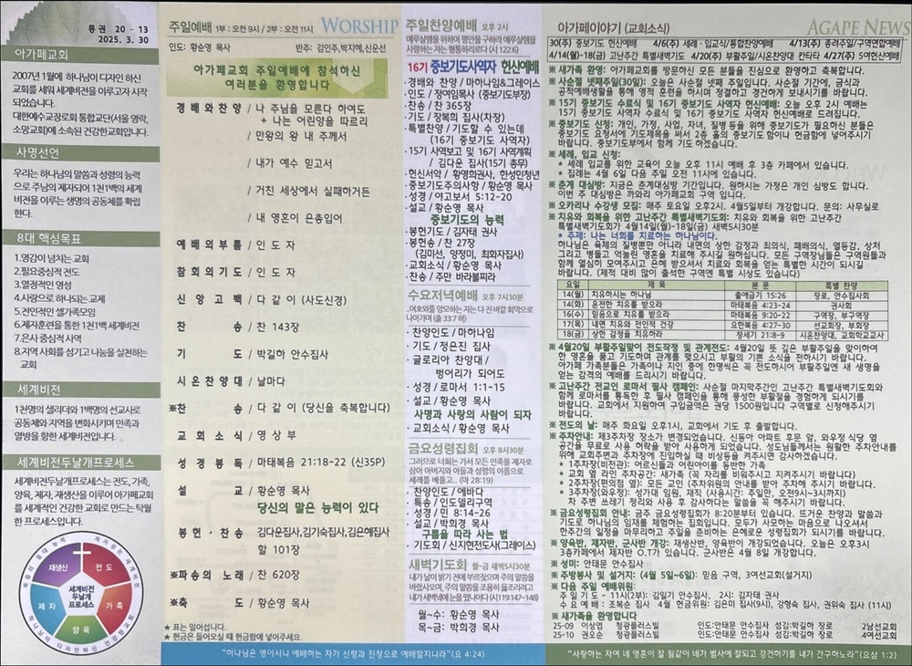 샬롬! 대한예수교장로회 아가페교회에 오신걸 진심으로 환영합니다.