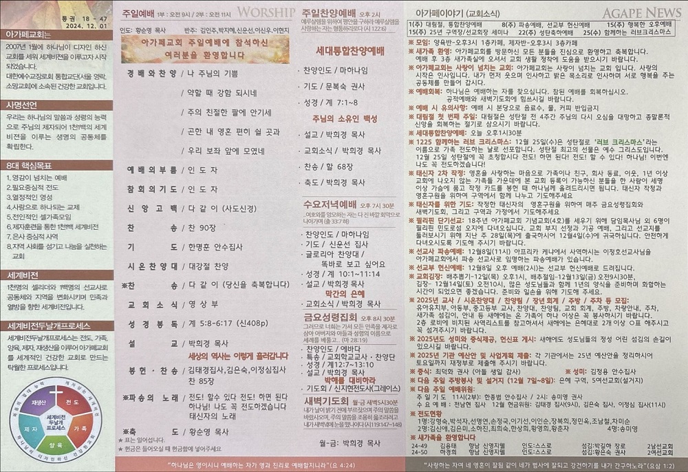 2024년 12월 1일 아가페교회 소식