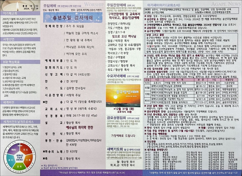2024년 12월 29일 아가페교회 소식