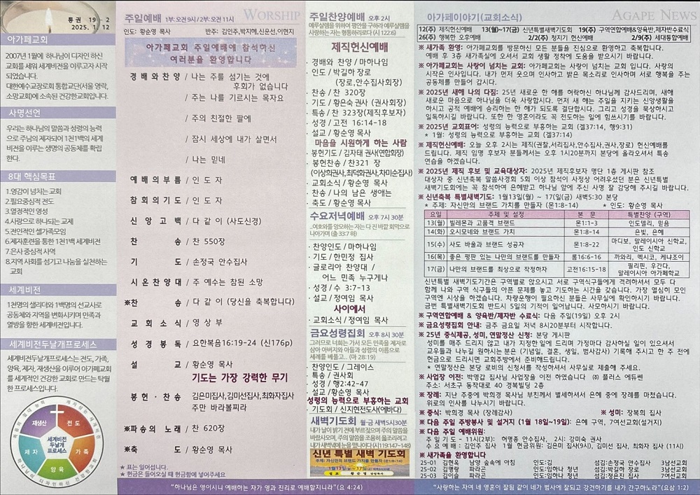 샬롬! 대한예수교장로회 아가페교회에 오신걸 진심으로 환영합니다.