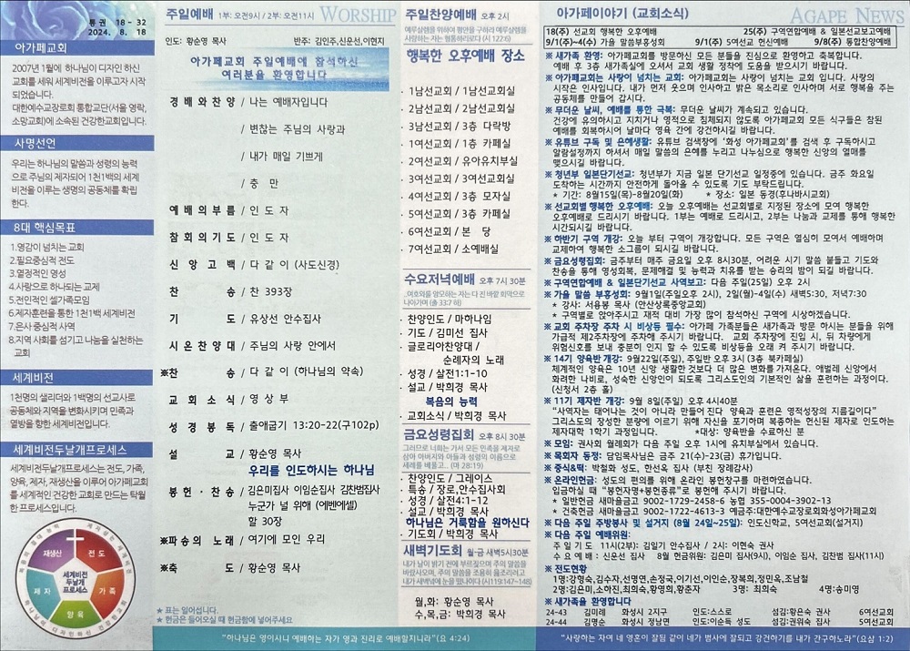 2024년 8월 18일 아가페교회 소식