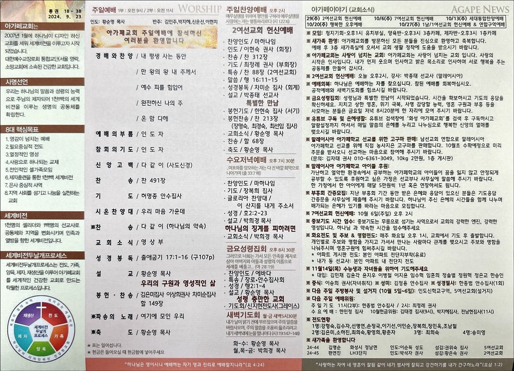 샬롬! 대한예수교장로회 아가페교회에 오신걸 진심으로 환영합니다.