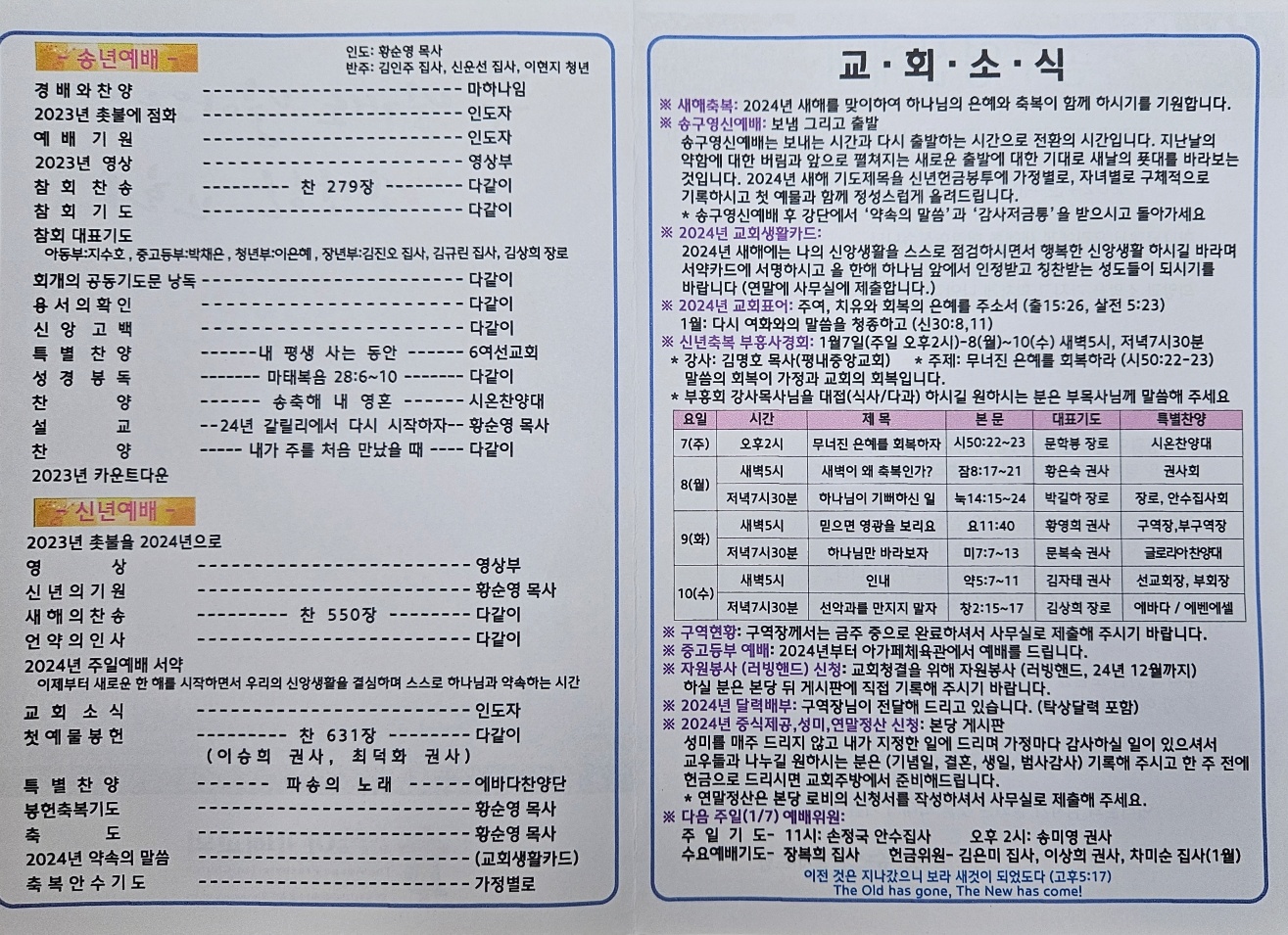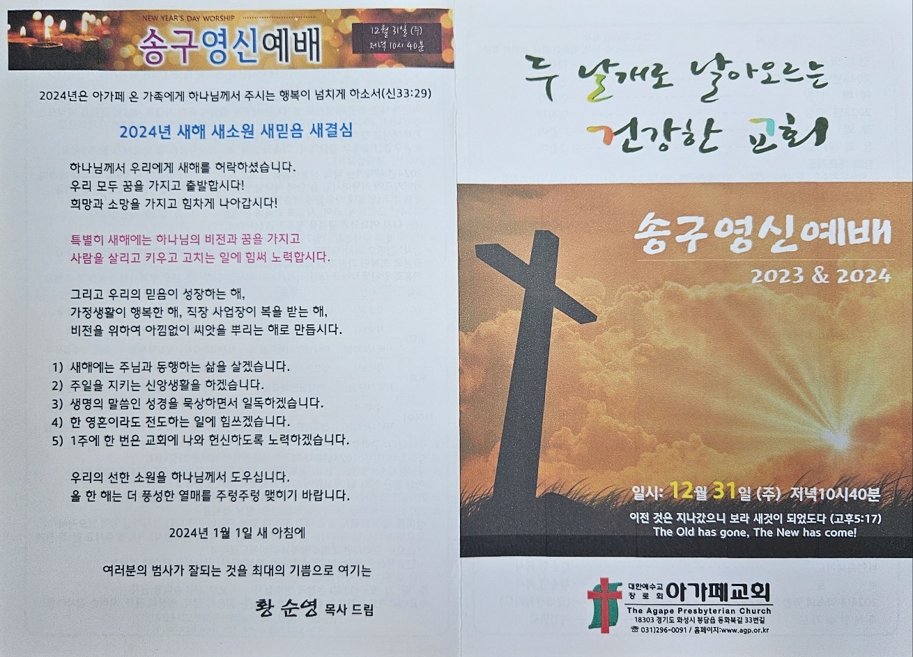 2023년 12월 31일 아가페교회 소식 (송구영신예...