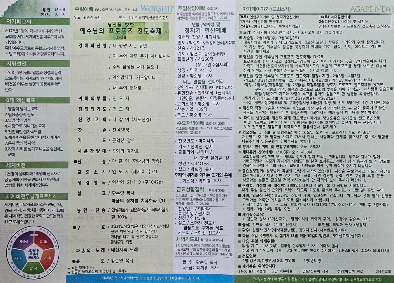 2024년 03월 03일 아가페교회 소식