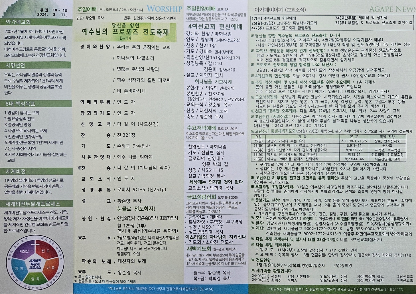 샬롬! 대한예수교장로회 아가페교회에 오신걸 진심으로 환영합니다.