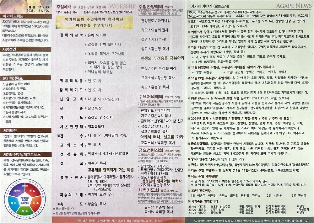 2023년 11월 5일 아가페교회 소식