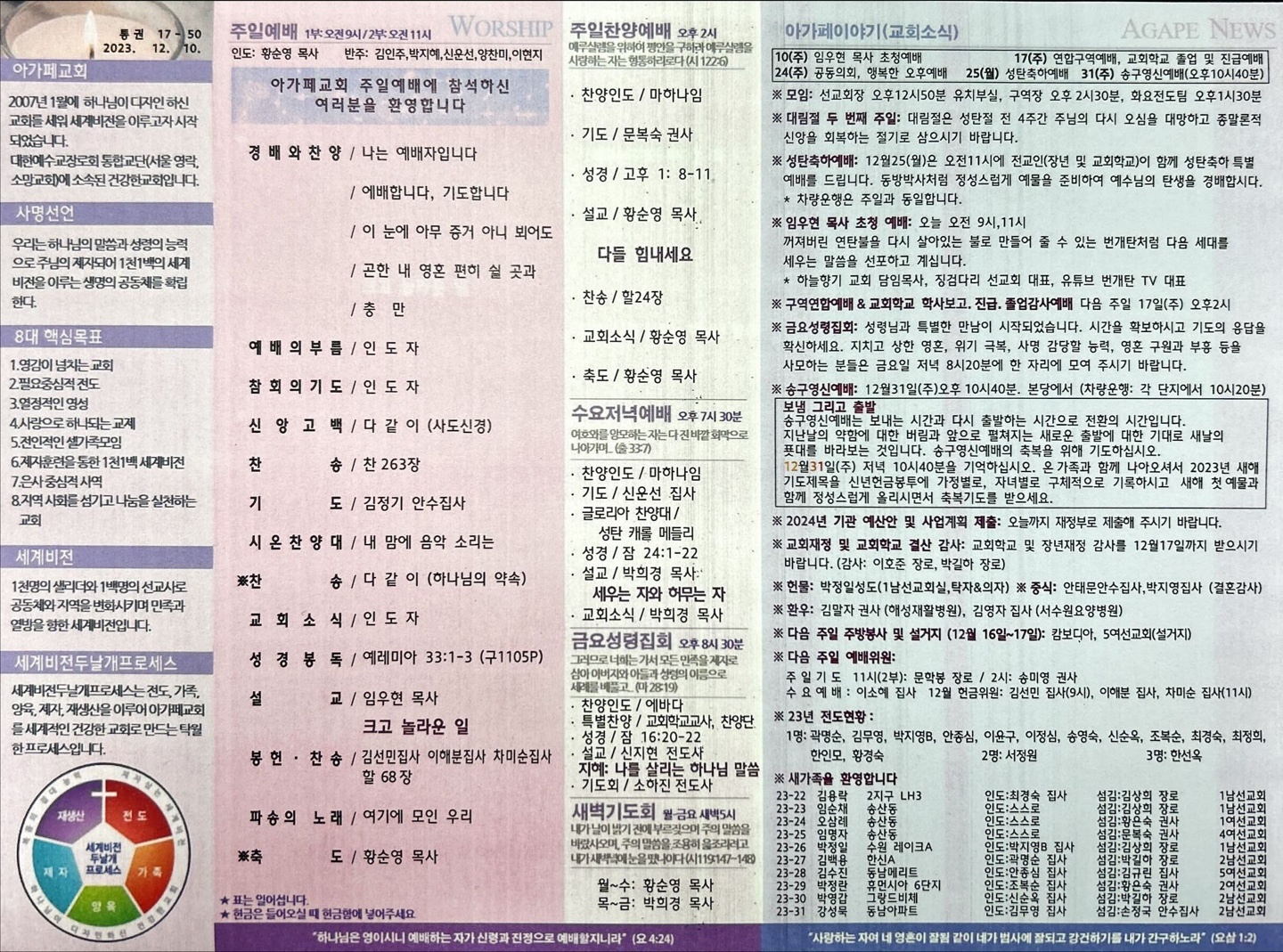 2023년 12월 10일 아가페교회 소식
