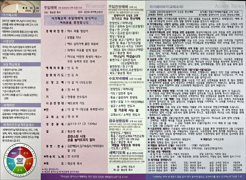 샬롬! 대한예수교장로회 아가페교회에 오신걸 진심으로 환영합니다.