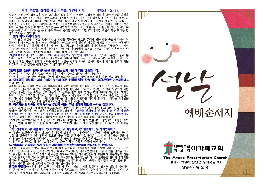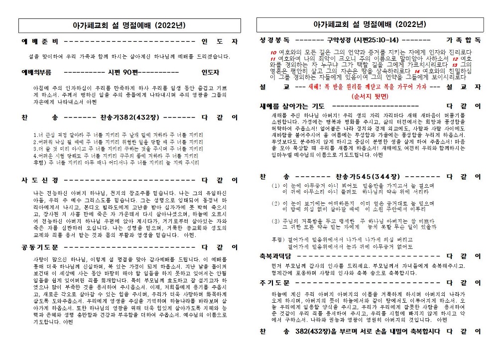 2022년 설 명절 가정예배순서지 입니다. (위의 첨부파일에서 다운로드 하셔서 사용하시면 됩니다)