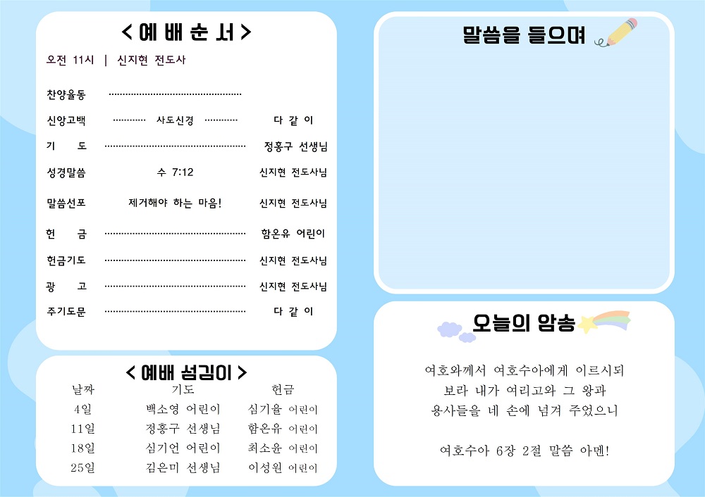 샬롬! 대한예수교장로회 아가페교회에 오신걸 진심으로 환영합니다.