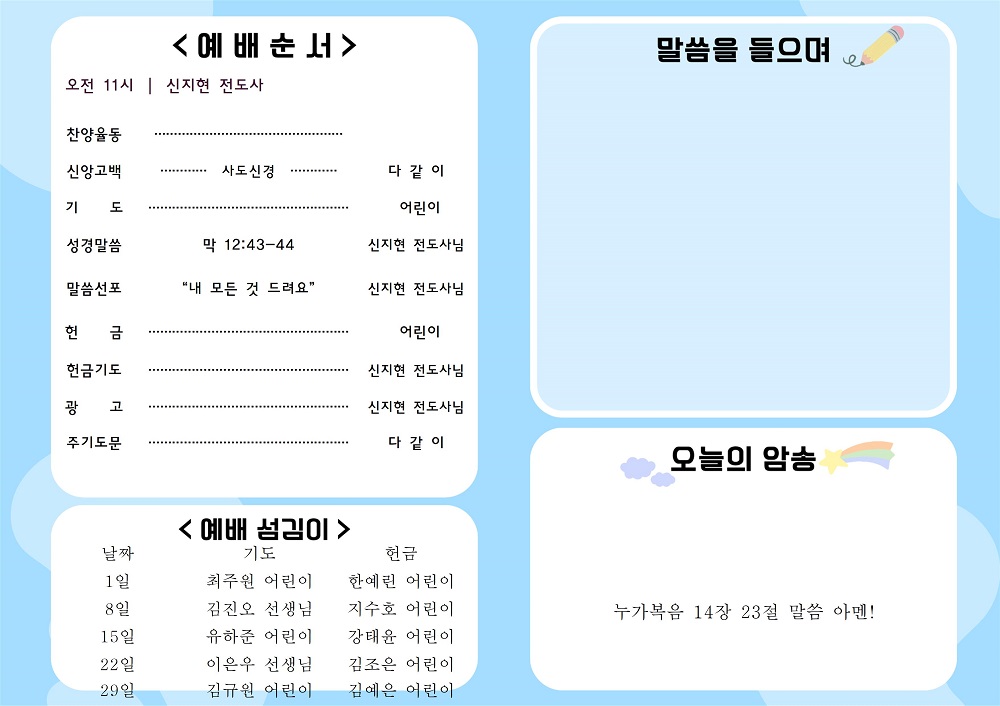 샬롬! 대한예수교장로회 아가페교회에 오신걸 진심으로 환영합니다.