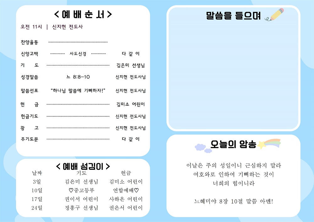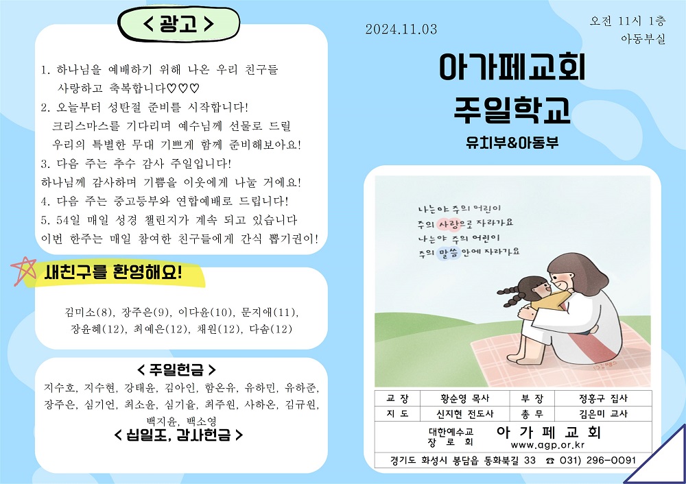 2024년 11월 3일 유치부&아동부 주보