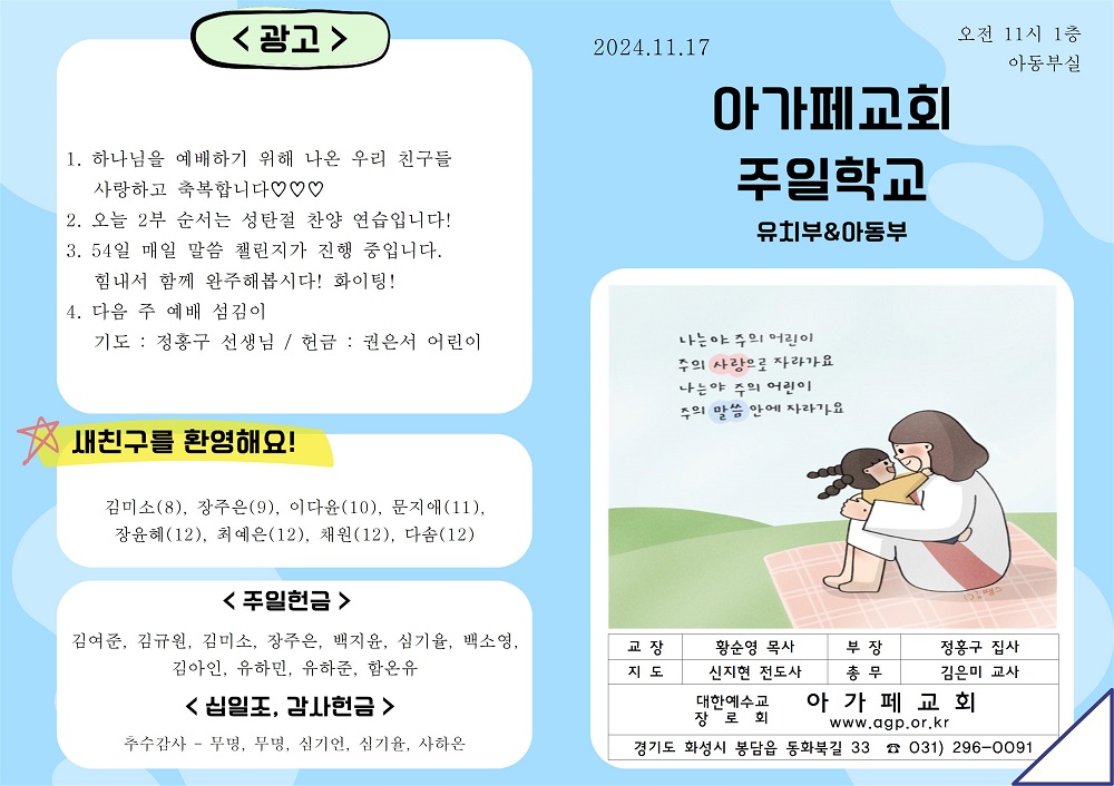 샬롬! 대한예수교장로회 아가페교회에 오신걸 진심으로 환영합니다.