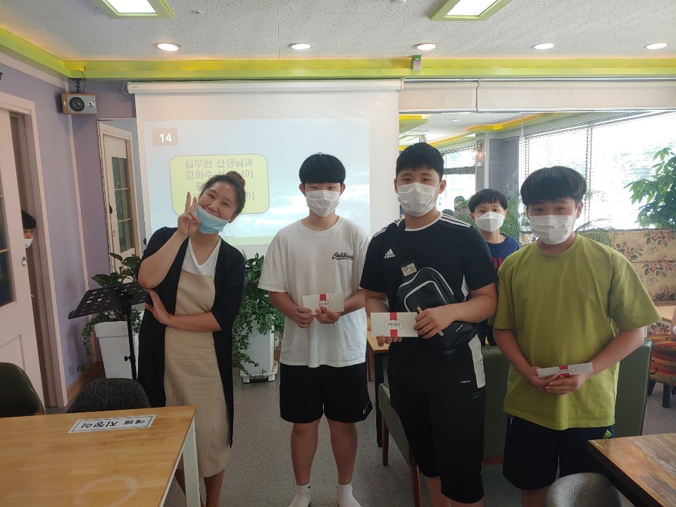 우리 중고등부 친구들의 친목을 위하여 예배를 마치고 OX 퀴즈대회가 열렸어요. 두번째 문제에서 올 탈락 하고 남은 인원은 딱 한명!!! (이렇게 쉽게 떨어질 줄 몰랐징....) 최후의 1인 시온이에게 선물을 주고, 다시 시작된 OX 퀴즈. 마지막 문제인 희수쌤과 우현쌤의 팔씨름 대회에서 희수쌤이 이기셔서~ 희수쌤을 응원한 남자친구 세명이 선물을 받게 되었답니다. 우리 친구들 재미있었나요?? 자자, 그럼 다음 프로그램때도 많은 참여 바랄께요~