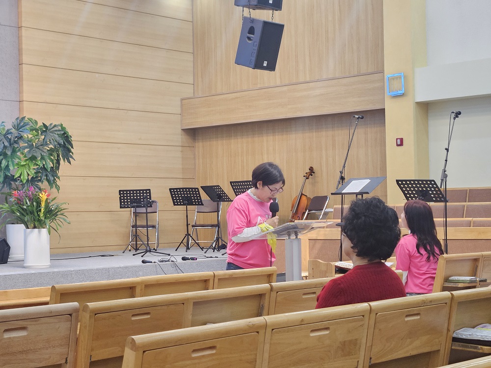 인도:권위숙집사(선교팀장) 기도:김규린집사(총무) 선교팀보고:임하나집사 성경봉독:권오순집사(신싱온 구역장)