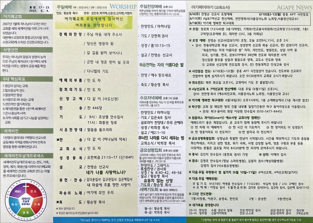 샬롬! 대한예수교장로회 아가페교회에 오신걸 진심으로 환영합니다.