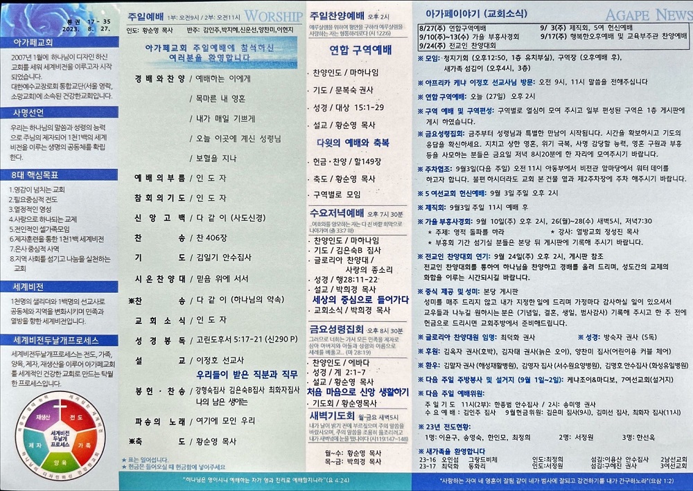 샬롬! 대한예수교장로회 아가페교회에 오신걸 진심으로 환영합니다.