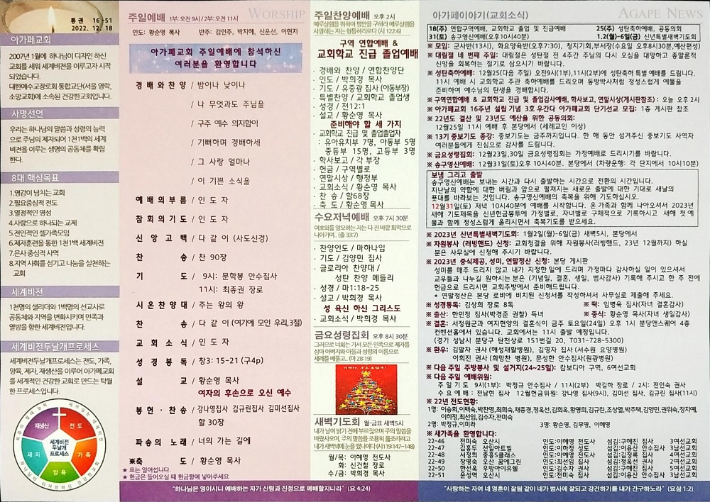 2022년 12월 18일 아가페교회 소식