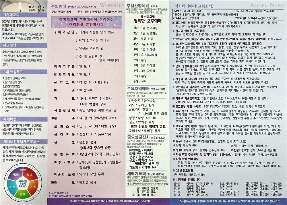 2023년 2월 12일 아가페교회 소식