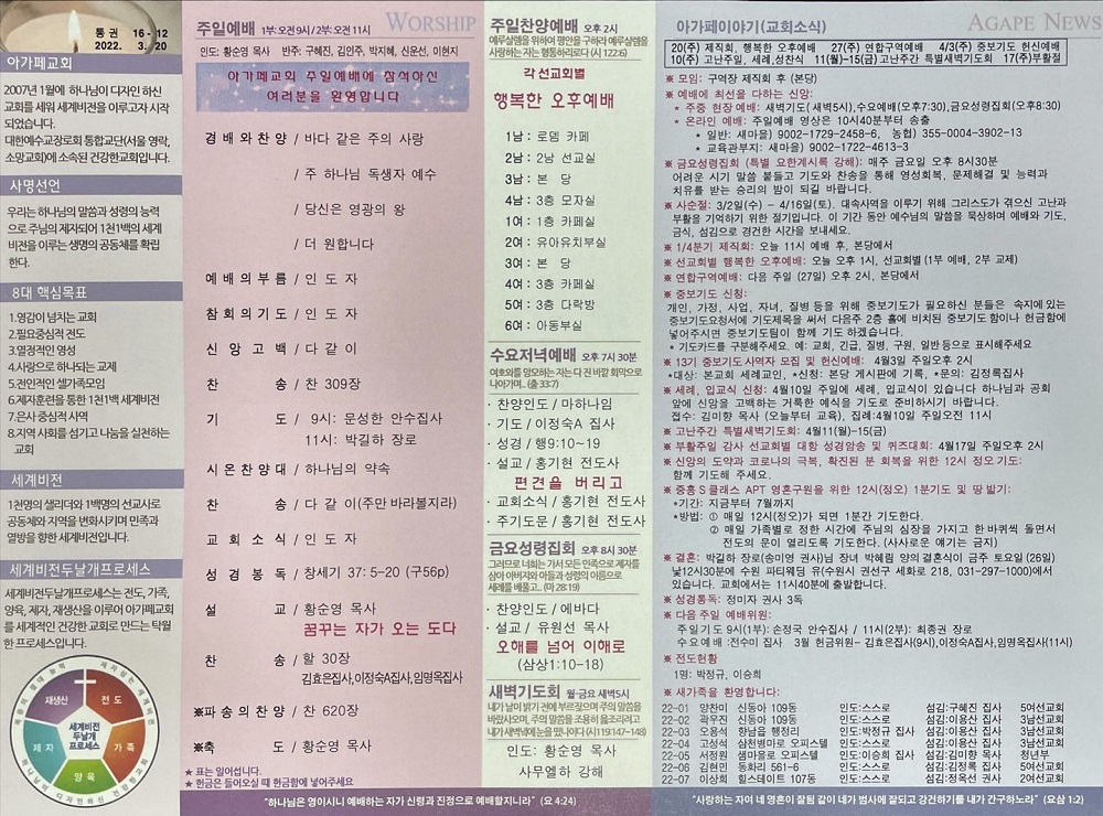 샬롬! 대한예수교장로회 아가페교회에 오신걸 진심으로 환영합니다.