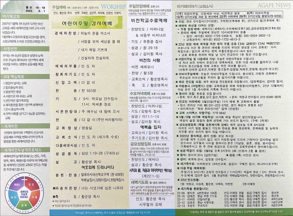 2022년 5월 1일 아가페교회 소식