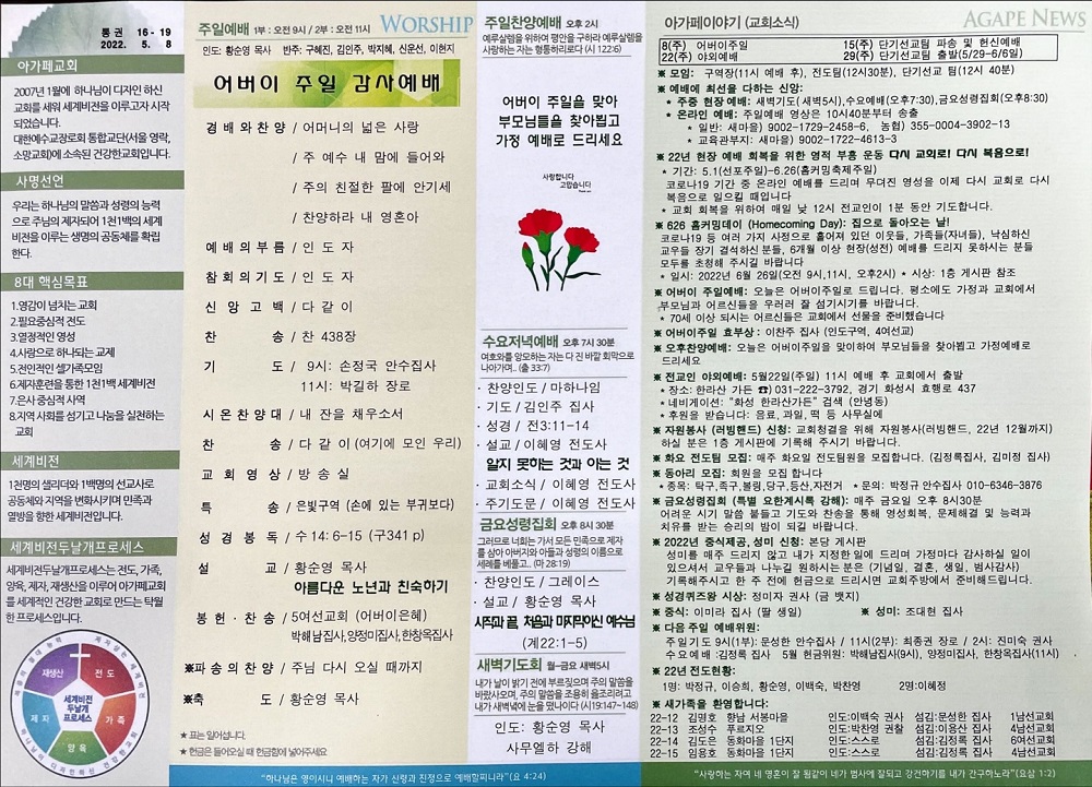 2022년 5월 8일 아가페교회 소식