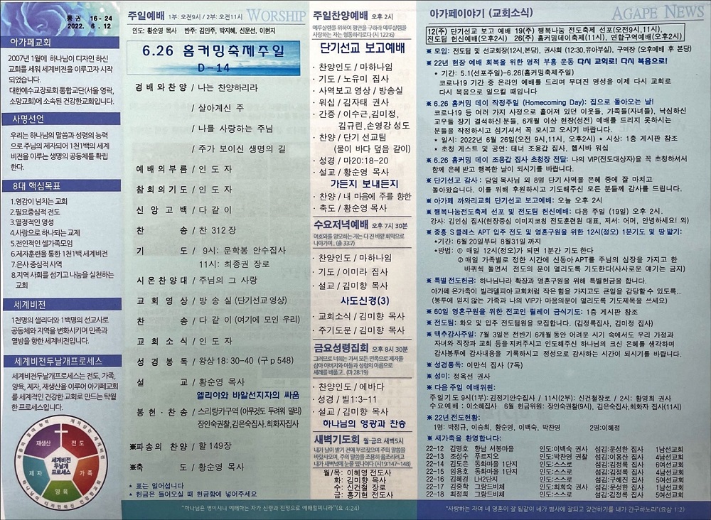 샬롬! 대한예수교장로회 아가페교회에 오신걸 진심으로 환영합니다.