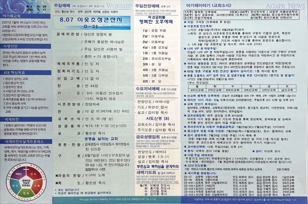 2022년 7월 17일 아가페교회 소식