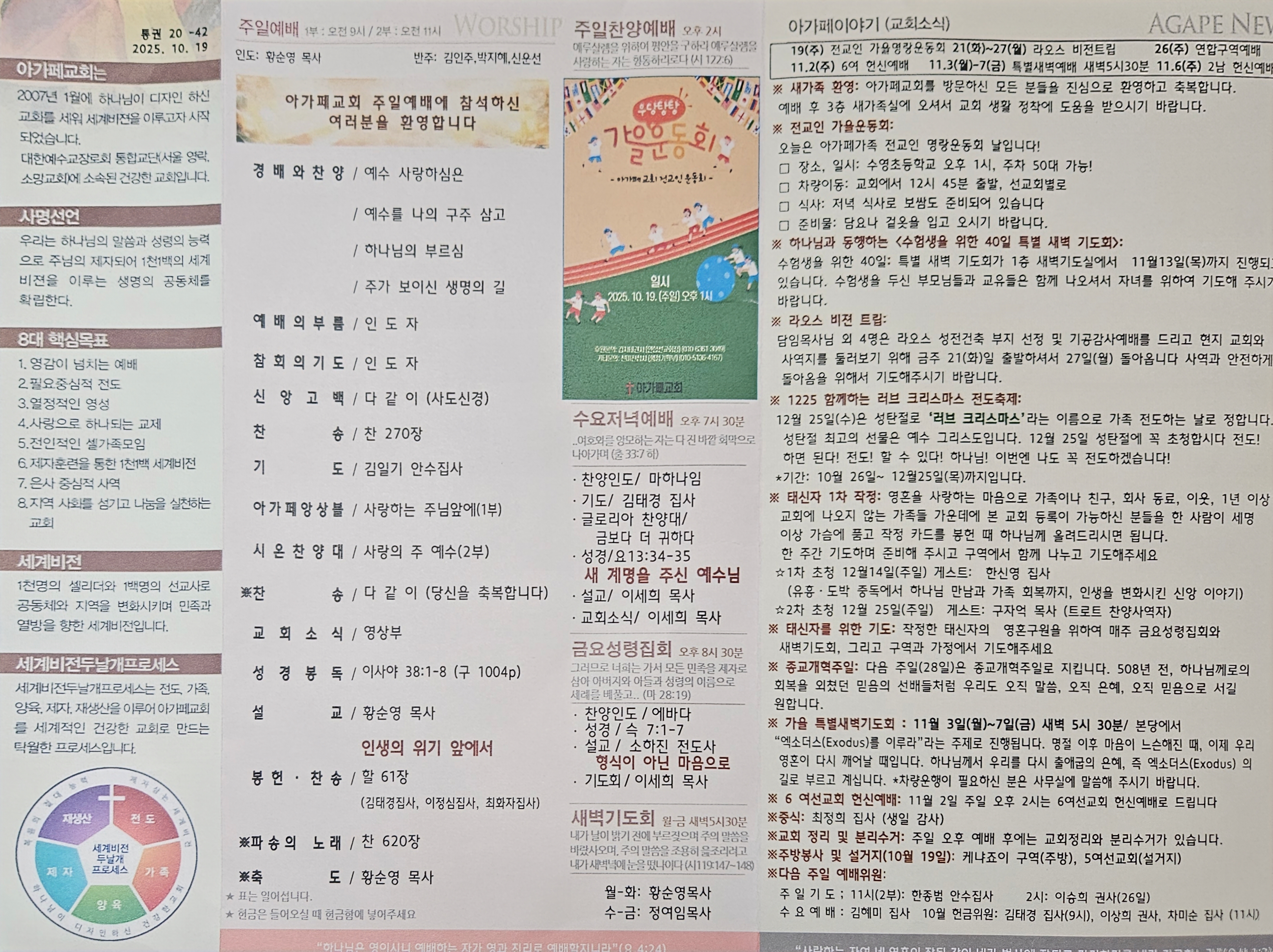 샬롬! 대한예수교장로회 아가페교회에 오신걸 진심으로 환영합니다.