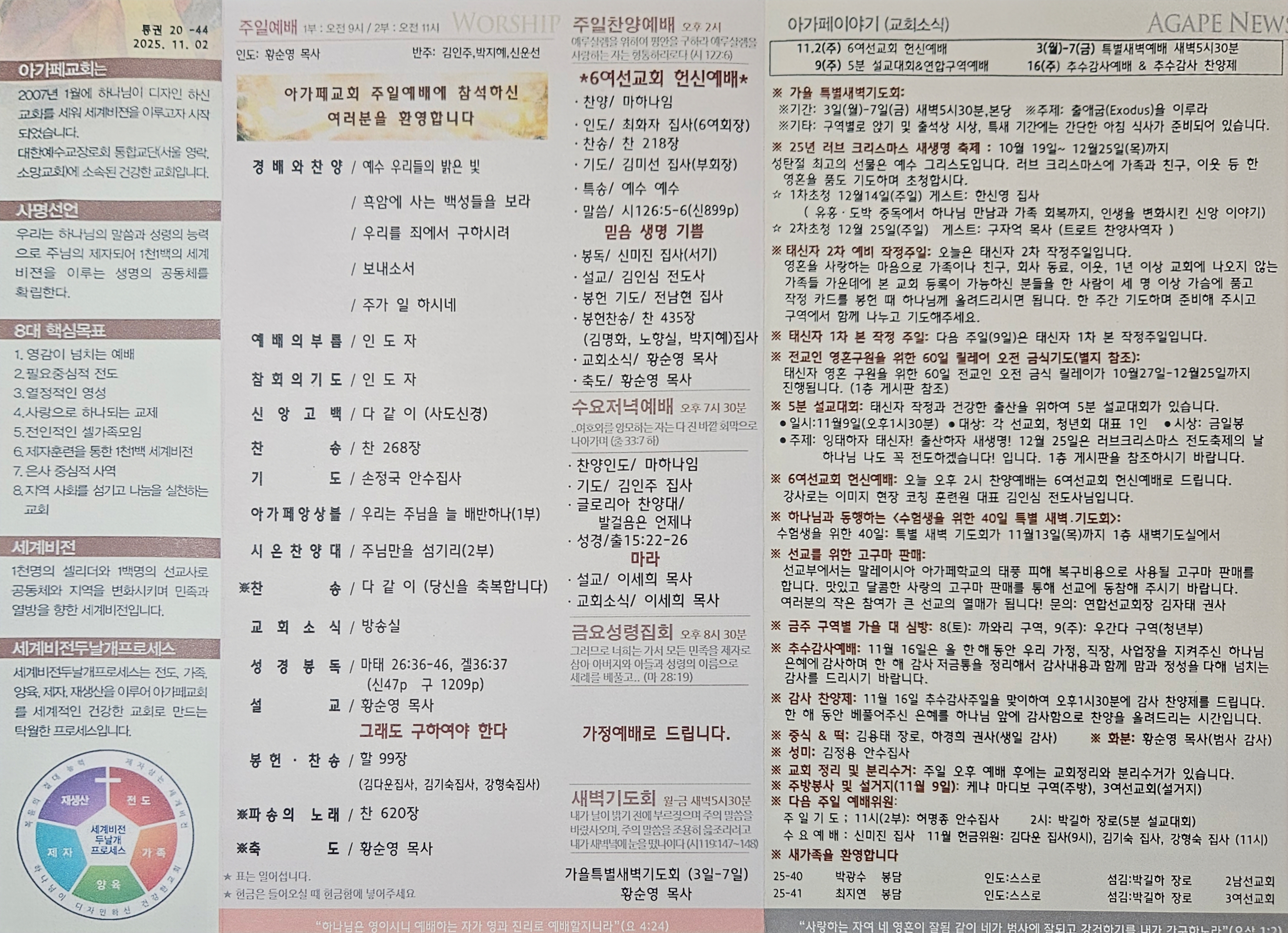 샬롬! 대한예수교장로회 아가페교회에 오신걸 진심으로 환영합니다.