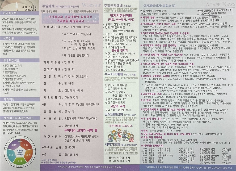 2025년 2월 9일 아가페교회 소식