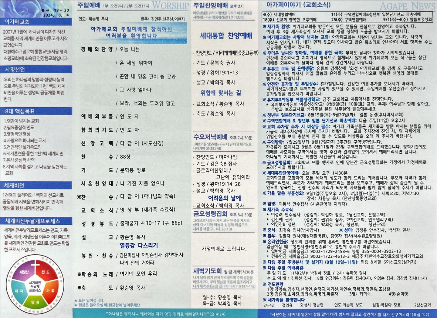 2024년 8월 4일 아가페교회 소식