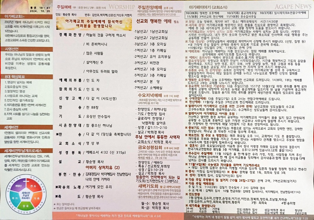 2024년 10월 20일 아가페교회 소식