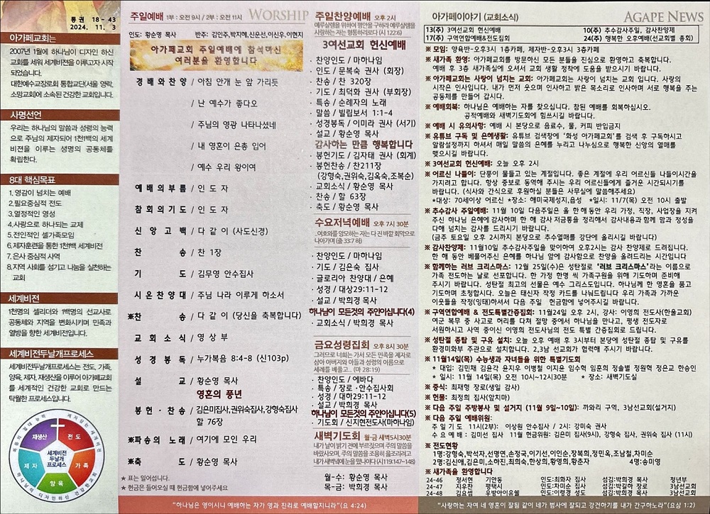 2024년 11월 3일 아가페교회 소식